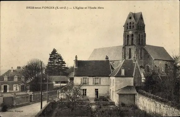 Ak Briis-sous-Forges Essonne, Église et École Libre