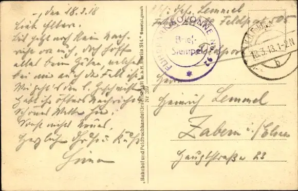 Zustand, siehe Scan, gelaufen, 1918 - ca 14 cm X 9 cm