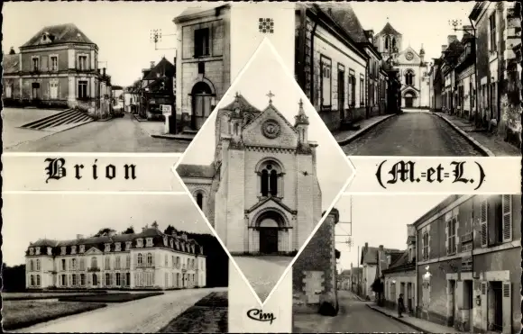 Ak Brion Maine-et-Loire, Straßenpartie, Schloss, Kirche