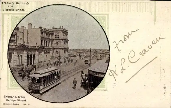 Ak Brisbane Australien, George Street, Treasury Buildings, Victoria Bridge