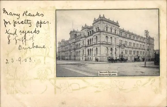 Ak Brisbane Australien, Treasury Buildings, Brisbane, historische Architektur