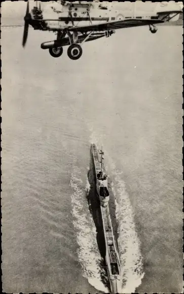 Ak Britischer Kampfflieger über einem U Boot, Royal Air Force