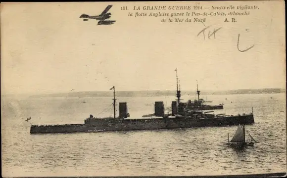 Ak Britisches Kriegsschiff, Britische Marine, Militärflugzeug