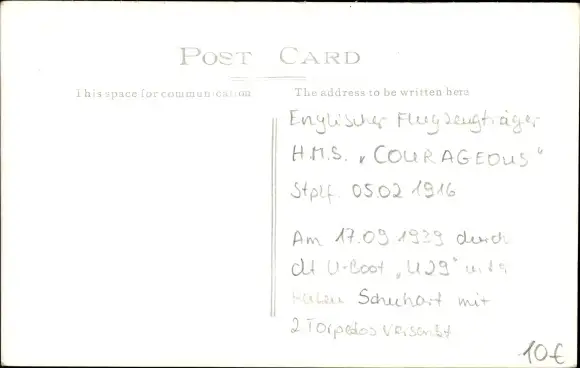 Ak Britisches Kriegsschiff, HMS Courageous, Flugzeugträger