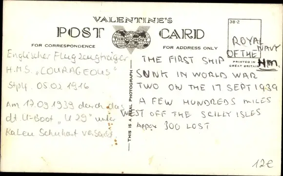 Ak Britisches Kriegsschiff, HMS Courageous, Flugzeugträger