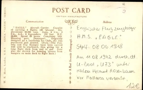 Ak Britisches Kriegsschiff, HMS Eagle, Flugzeugträger