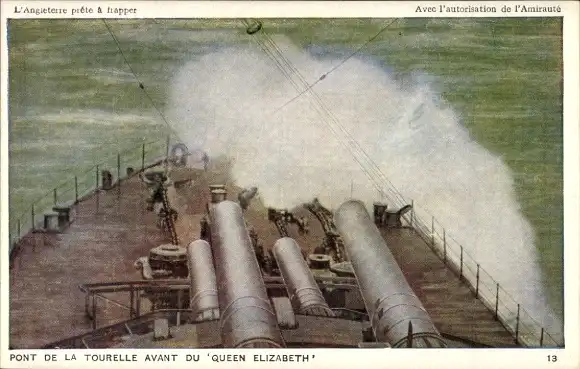 Ak Britisches Kriegsschiff, HMS Queen Elizabeth, Dreadnought, Kanonen