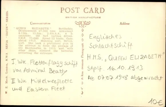 Ak Britisches Kriegsschiff, HMS Queen Elizabeth, Schlachtschiff