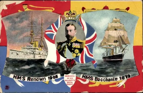 Ak Britisches Kriegsschiff, HMS Renown, Bacchante, König Georg V