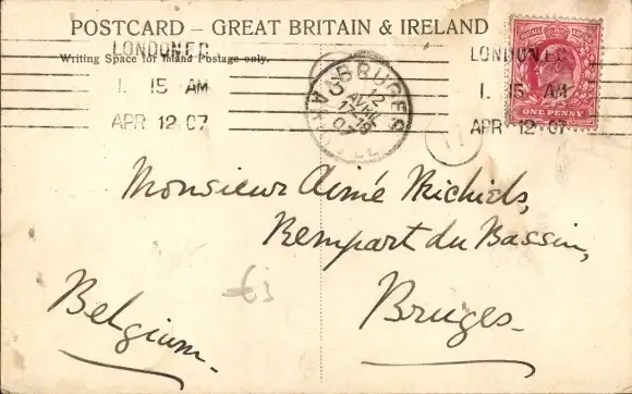 Zustand, siehe Scan, gelaufen, 1907 - ca 14 cm X 9 cm