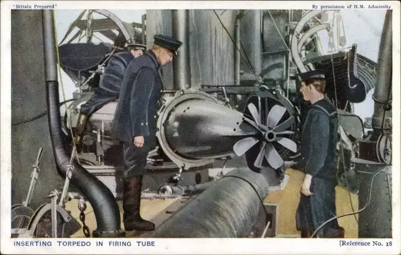 Ak Britisches Kriegsschiff, Inserting torpedo in firing tube, Seeleute