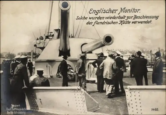 Ak Britisches Kriegsschiff, Monitor, Geschütze, I WK
