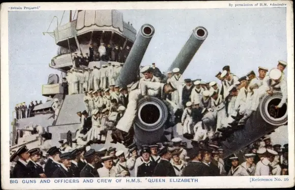 Ak Britisches Kriegsschiff, Offiziere, Matrosen, HMS Queen Elizabeth