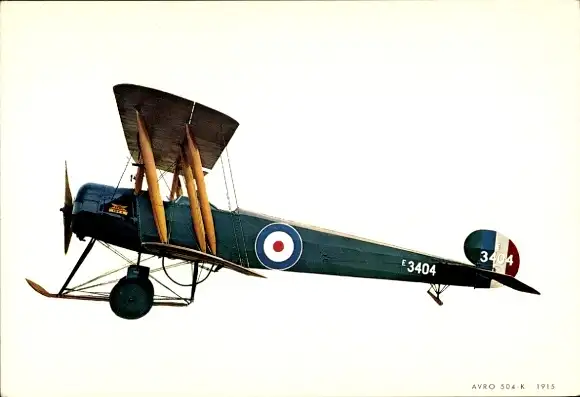 Ak Britisches Militärflugzeug Avro 504 K, E 3404, 1915