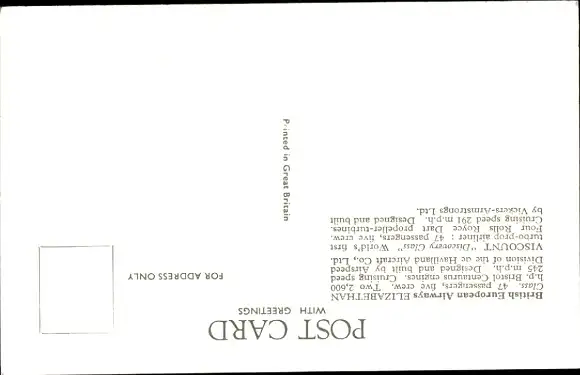 Ak Britisches Passagierflugzeug, BEA, Elizabethan Class Aeroplane, Viscount Discovery Class