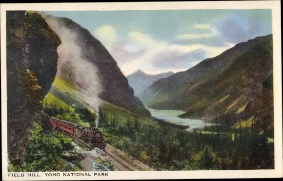 Ak British Columbia Kanada, Field Hill, Yoho National Park, Eisenbahn, Dampflok
