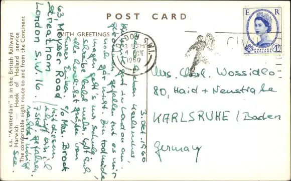 Zustand, siehe Scan, gelaufen, 1960 - ca 14 cm X 9 cm