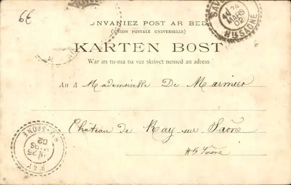 Zustand, siehe Scan, gelaufen, 1902 - ca 9 cm X 14 cm