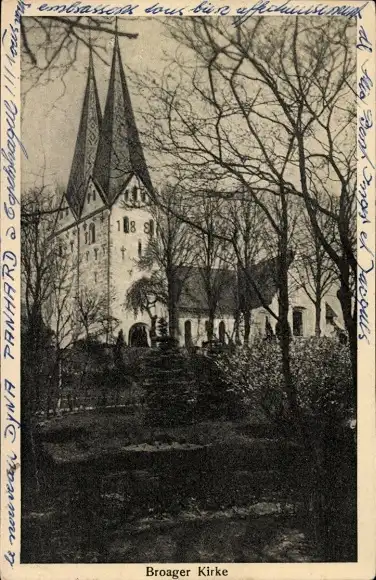 Ansichtskarte, Postkarte, Kirche, Stadtkirche, Gotteshaus, Sakralbau, Dänemark