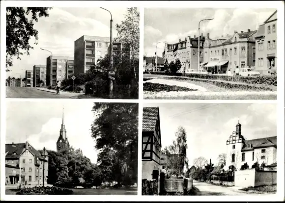 Ak Brockwitz Coswig in Sachsen, Wohnsiedlung, Kirchturm, Giebelhaus