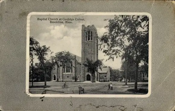 Ak Brookline Massachusetts USA, Baptistenkirche an der Coolidge Corner