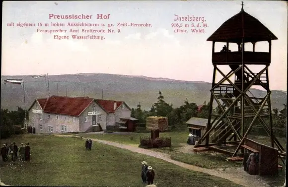 Ak Brotterode Trusetal in Thüringen, Preußischer Hof, Aussichtsturm, Blick zum Inselsberg