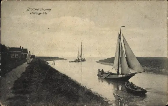 Ak Brouwershaven Zeeland, Blick auf den Hafen