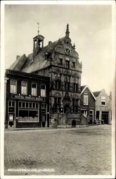 Ak Brouwershaven Zeeland, Stadhuis, Hotel Ringelberg