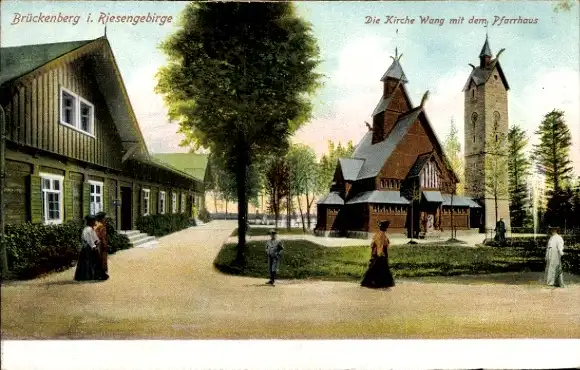 Ak Brückenberg b. Krummhübel Schlesien, Kirche Wang mit Pfarrhaus