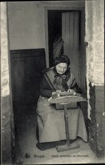 Ak Brügge Westflandern, alte Spitzenklöpplerin