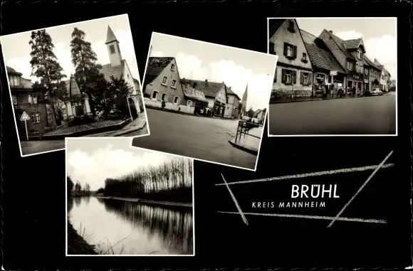 Ak Brühl in Baden, Flusspartie, Straßenpartie, Häuser
