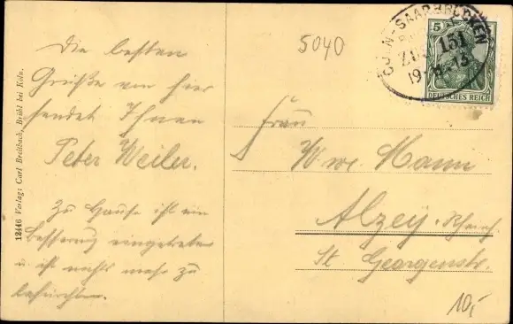 Zustand, siehe Scan, gelaufen, 1913 - ca 14 cm X 9 cm