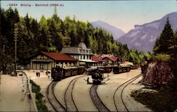 Ak Brünig Meiringen Kt Bern Schweiz, Bahnhof, Gleisseite, Dampflok