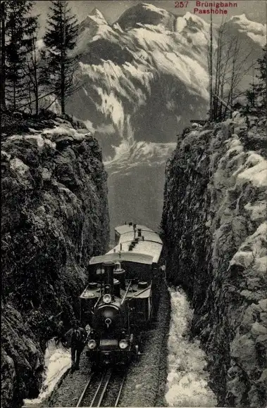 Ak Brünig Meiringen Kt. Bern Schweiz, Brünigbahn, Passhöhe, Zahnradbahn