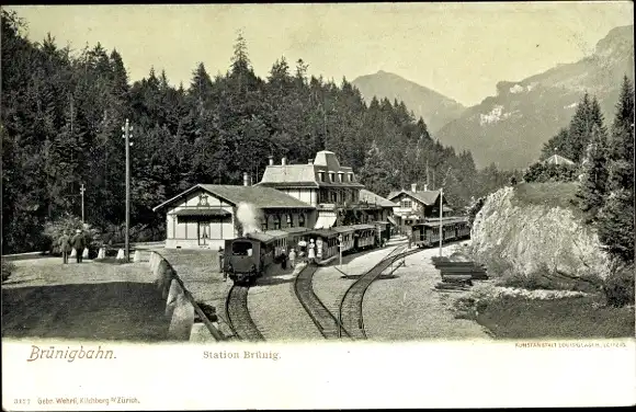 Ak Brünig Meiringen Kt. Bern Schweiz, Station Brünig, Brünigbahn