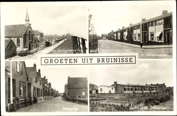 Ak Bruinisse Zeeland, Kirche, Straßenpartie, Schule