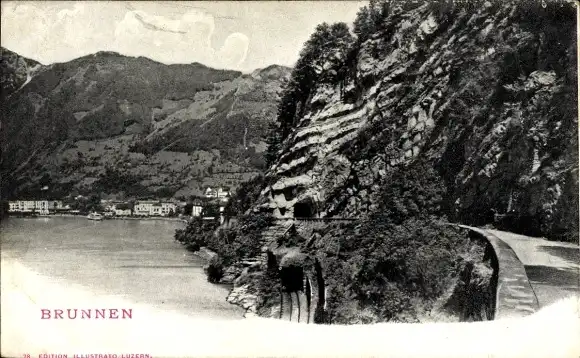 Ak Brunnen Kt Schwyz, Teilansicht, Felsen