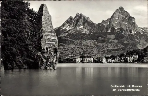 Ak Brunnen Kt Schwyz, Vierwaldstättersee, Schillerstein