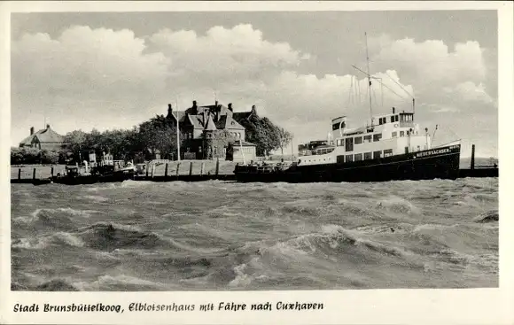 Ak Brunsbüttelkoog Brunsbüttel in Dithmarschen, Elblotsenhaus, Fähre nach Cuxhaven