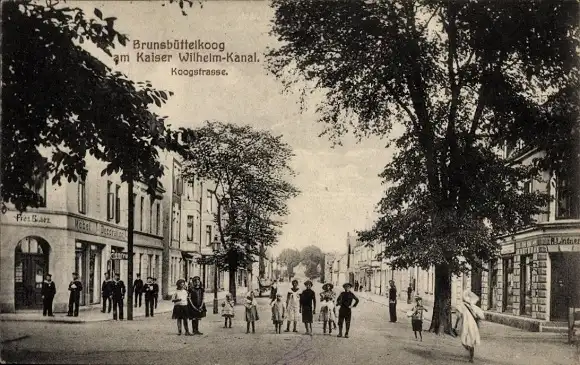 Ak Brunsbüttelkoog Brunsbüttel in Dithmarschen, Koogstraße, Geschäfte, Kinder