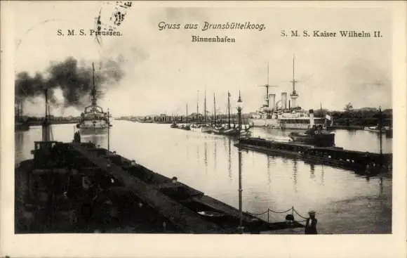 Ak Brunsbüttelkoog Brunsbüttel in Dithmarschen, S.M.S. Preußen, S.M.S. Kaiser Wilhelm II.