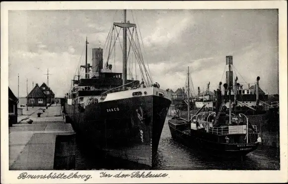 Ak Brunsbüttelkoog Brunsbüttel in Dithmarschen, Schleuse, Dampfer Draco
