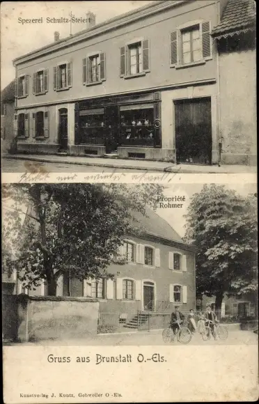 Ak Brunstatt Elsass Haut Rhin, Spezerei*, Gasthaus**