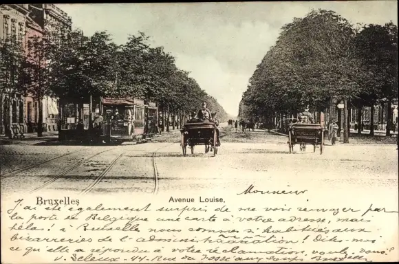 Ak Bruxelles Brüssel, Avenue Louise, Straßenpartie, Straßenbahn