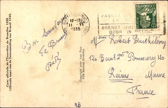 Zustand, siehe Scan, gelaufen, 1935 - ca 14 cm X 9 cm