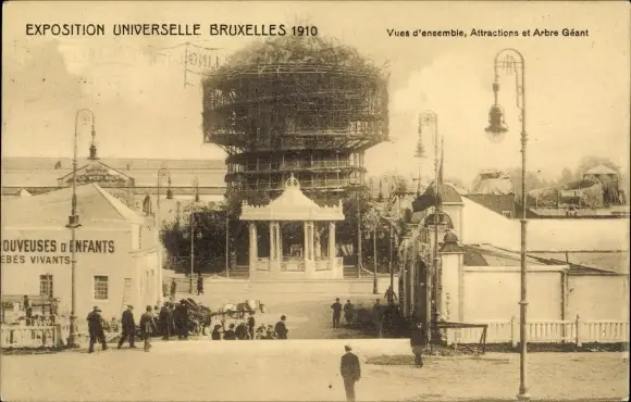 Ak Bruxelles Brüssel, Exposition de 1910, Vue d'ensemble, Attractions et Arbre Geant
