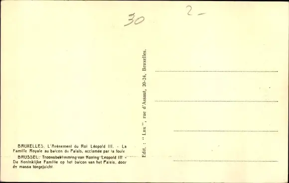 Ak Bruxelles Brüssel, L'Avènement du Roi Léopold III, Famille Royal au balcon du Palais