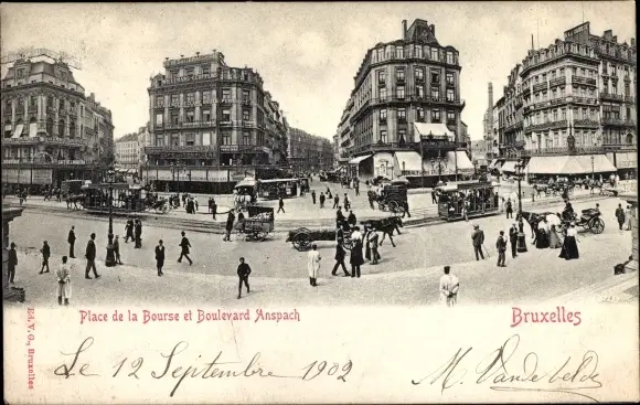 Ak Bruxelles Brüssel, Place de la Bourse et Boulevard Anspach