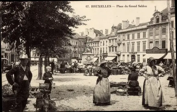 Ak Bruxelles Brüssel, Place du Grand Sablon, Denkmal, Händler auf dem Markt
