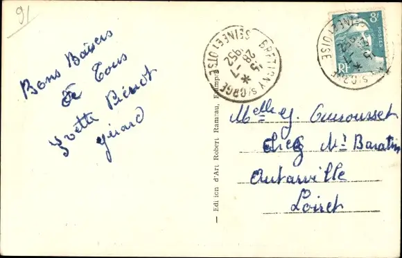 Zustand, siehe Scan, gelaufen, 1952 - ca 14 cm X 9 cm